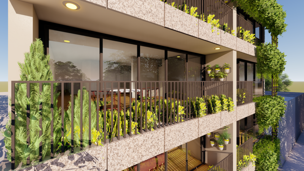 Perla 1417 , un edificio que mejora tu experiencia de vida, que te ayuda a vivir mejor. Con una ubicación privilegiada y vista frente a parque. Amplia iluminación y acabados únicos. La fachada se basa en el estilo industrial, el cual posee materiales como la granalla, ladrillo, acero y el color verde grisáceo característico de nuestros proyectos.